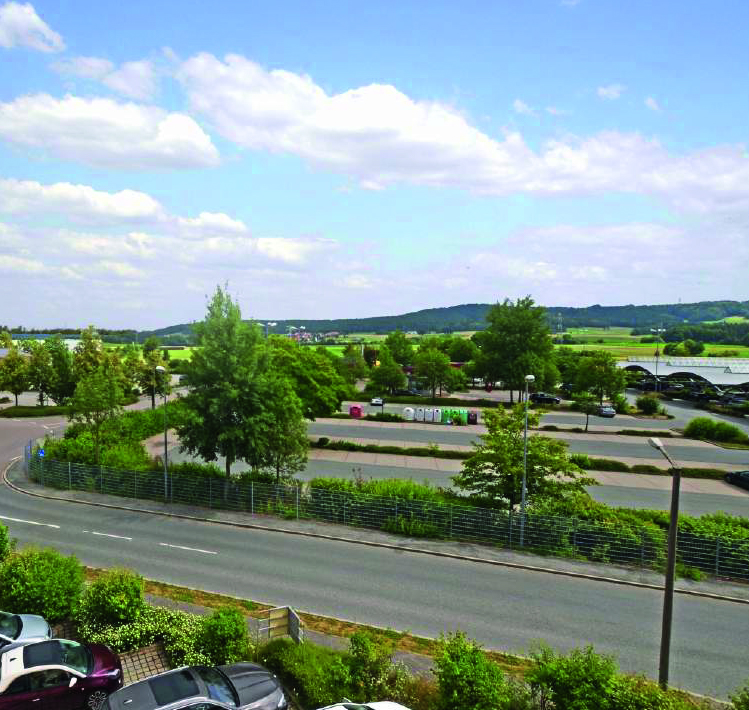 Die Räume sind durch die großen Fenster und Süd-Ost Lage hell und freundlich und Tageslicht durchflutet. Der Ausblick auf die weiten Grünanlagen des Gewerbegebiets sorgt für angenehme Entspannung.